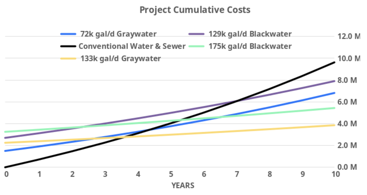 Example of ROI payback period for greywater or blackwater onsite reuse system vs. municipal supply only